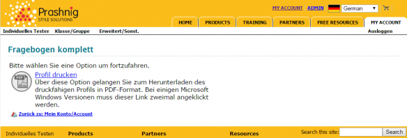 einem ‚Persönlichen Bericht‘ mit Lernempfehlungen, Grafiken und Diagrammen. Außerdem gibt es als Übersicht eine Profilzusammenfassung, welche die wichtigsten Elemente Ihres individuellen Lernstils beschreibt.